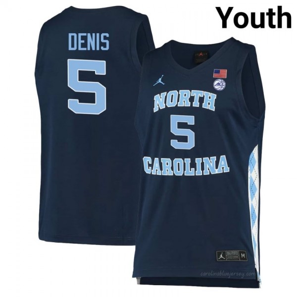 Isaiah Denis UNC Tar Heels #5 Navy Youth NCAA Basketball Jersey | Official Team Replica Apparel 771s8DAj